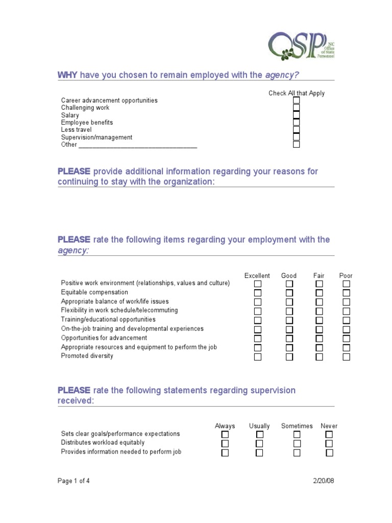 Retention Question How satisfied are you with your current role and responsibilities? an employee retention survey is a questionnaire designed to measure and understand the factors influencing employee satisfaction and loyalty within your organisation. Identify areas lacking in challenge or engagement and adjust roles or provide more meaningful work where needed. 42 excellent employee retention survey questions that you can use to better understand your employees' feelings and identify the areas for improvement. Ultimately, they help you evaluate how likely your employees are going to stay (or leave). Do you feel a sense of belonging within your team and the company? the 25 best employee retention survey questions. employee surveys provide clear evidence of how employees feel in their workplace. creating effective employee retention survey questions is an art. discover the most relevant and effective employee retention survey questions with this guide. Learn how to develop focused questions to unveil key. an employee retention survey is a carefully crafted questionnaire used by organizations to gather candid feedback from their workforce on job satisfaction, working conditions, and the overall employee experience (ex). Start by setting clear objectives for your survey,. Here are 20 employee retention survey questions to improve retention on your teams. Get the answers you need to improve your strategies. How satisfied are you with your current role and responsibilities?